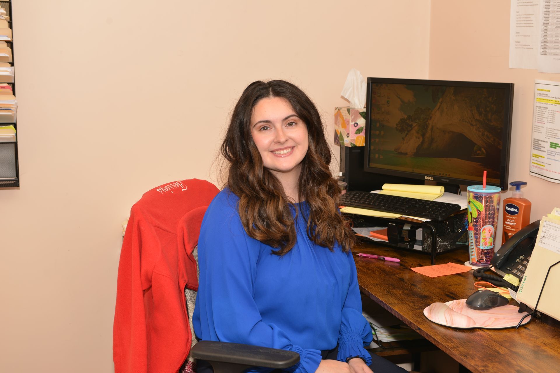 With a busy office, Chris’ job can be quite daunting, but her organizational skills, utilizing all the latest technology, keeps this important aspect of the office in line.